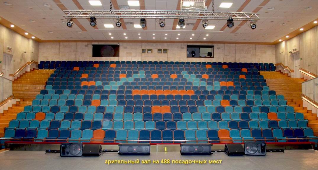 Концертный зал (487 места) с оборудованной сценой, театрально-концертным светом и профессиональным звуком.