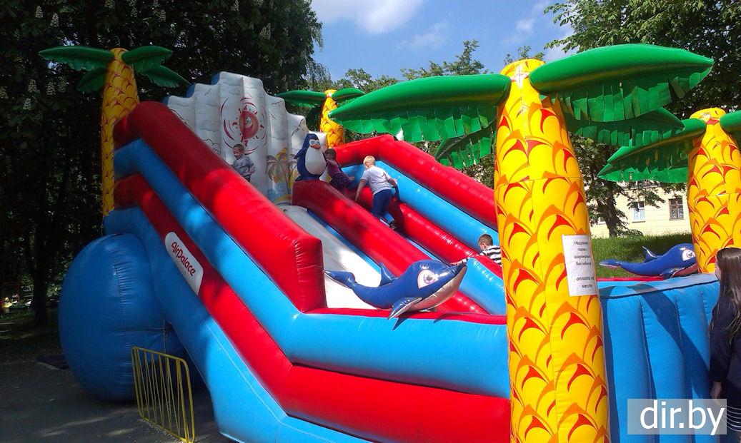 Надувная горка с шариковым бассеином в парке Горького (г. Минск 21 мая 2016)