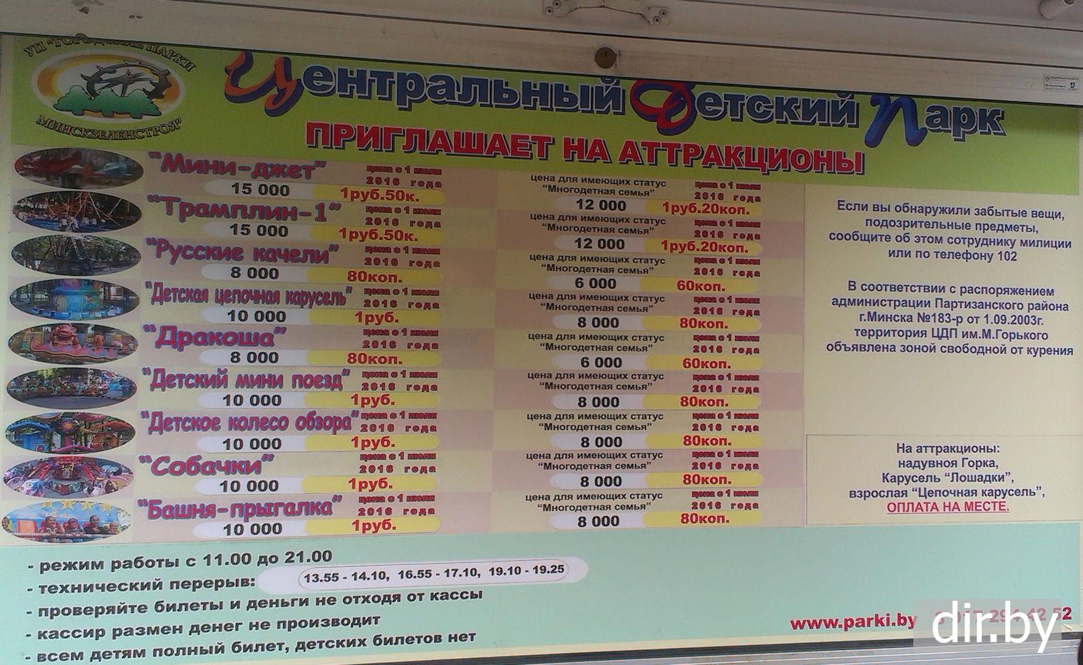Цены на детские аттракционы в парке Горького (г. Минск 28 мая 2016)
