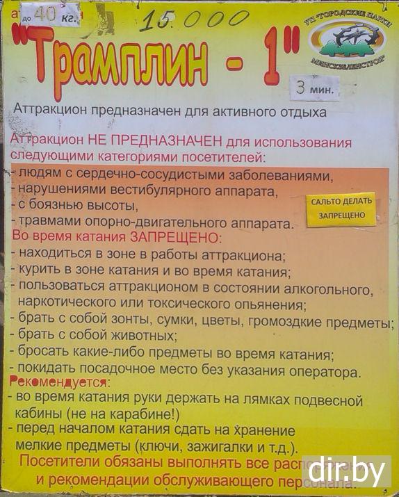 Один билет стоит 15 000 бел. руб. за 3 минуты. Максимальный вес 40 кг.