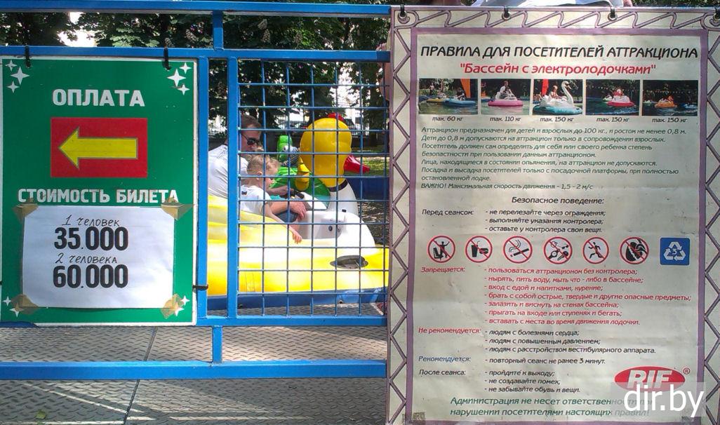 Цена на бассейн с электролодочками в парке Горького (г. Минск 28 мая 2016)