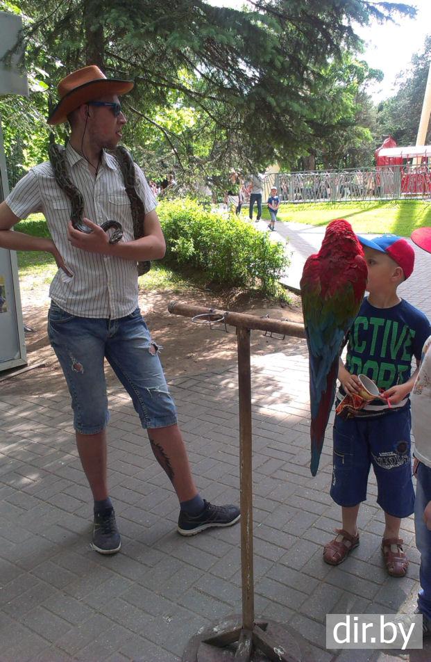 сфотографироваться со змеей и попугаем в парке Горького (г. Минск 28 мая 2016)