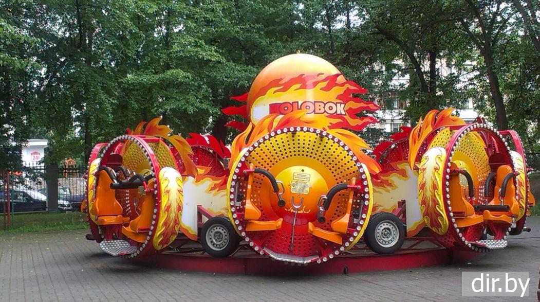Аттракцион "Колобок". Цена: 20 000 бел. руб. одному человеку в кабинке 2 человека. в парке Горького (г. Минск 28 мая 2016)