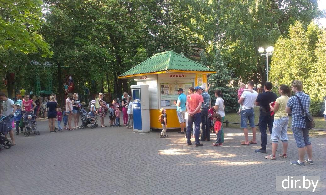 Очередь в кассе на детские аттракционы в парке Горького в 17:00 (г. Минск 28 мая 2016) суббота