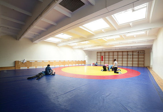 ( 220 кв.м.). Занимаются дети с 10 лет и взрослые борьбой самбо, дзюдо и восточными единоборствами. В зале установлены тренажеры и большая “шведская”стенка. Среди воспитанников ФОКа есть чемпионы и призеры международных и республиканских соревнований по самбо.