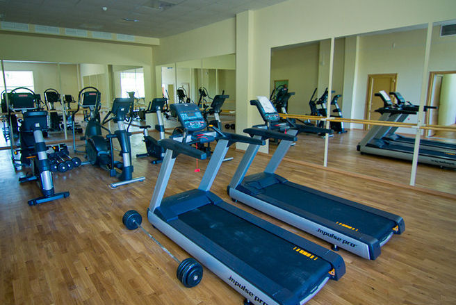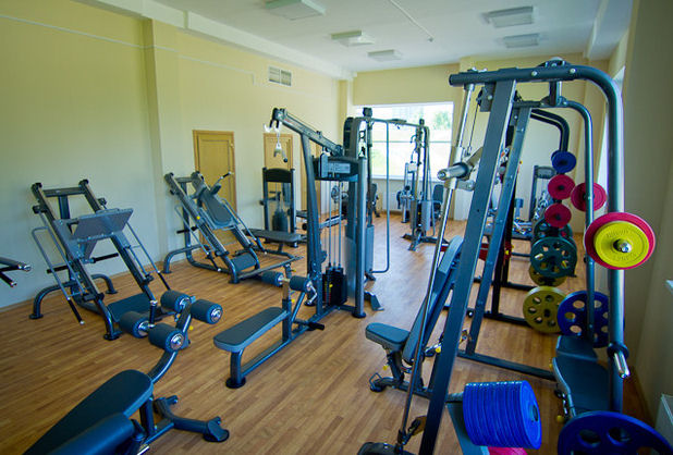 В спортивном зале играют в мини-футбола, проводят занятия аэробики