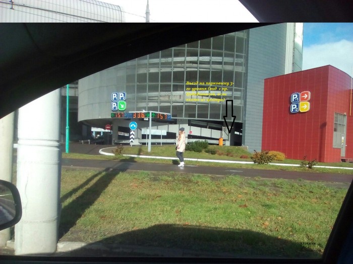 Не надо придумывать,куча входов , с улицы со стороны проспекта Победителей,со второго этажа торгового центра,с парковки третьего уровня, есть указатели.Просто когда человек что-то ищет , то он по сторонам смотрит , а не в телефон.
