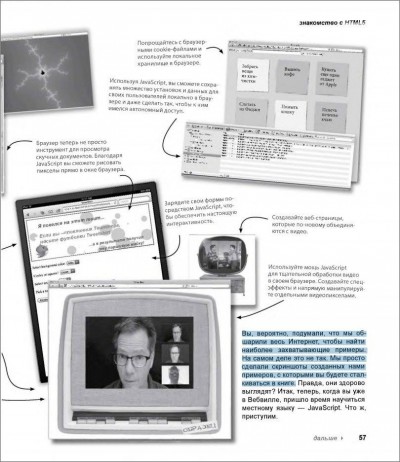 Хотите создавать динамичные, интерактивные, насыщенные данными веб-страницы? Почему бы не использовать HTML5 для создания полнофункциональных веб-приложений? И почему бы не делать это с помощью современных методик, которые так же легко применимы к вашему настольному браузеру, как и к мобильным устройствам? Вам, конечно же, захочется использовать такие новейшие HTML5-технологии, как API-интерфейс Geolocation, элемент video, 2D-рисование, API-интерфейсы Web Storage и Web Workers и т. д. Не так ли?