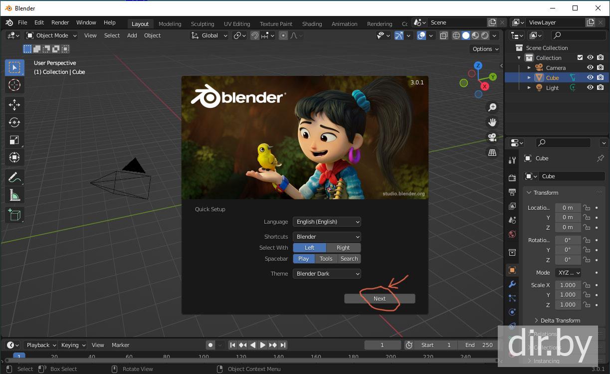 Blender (редактор 3D графики) скачиваем, устанавливаем