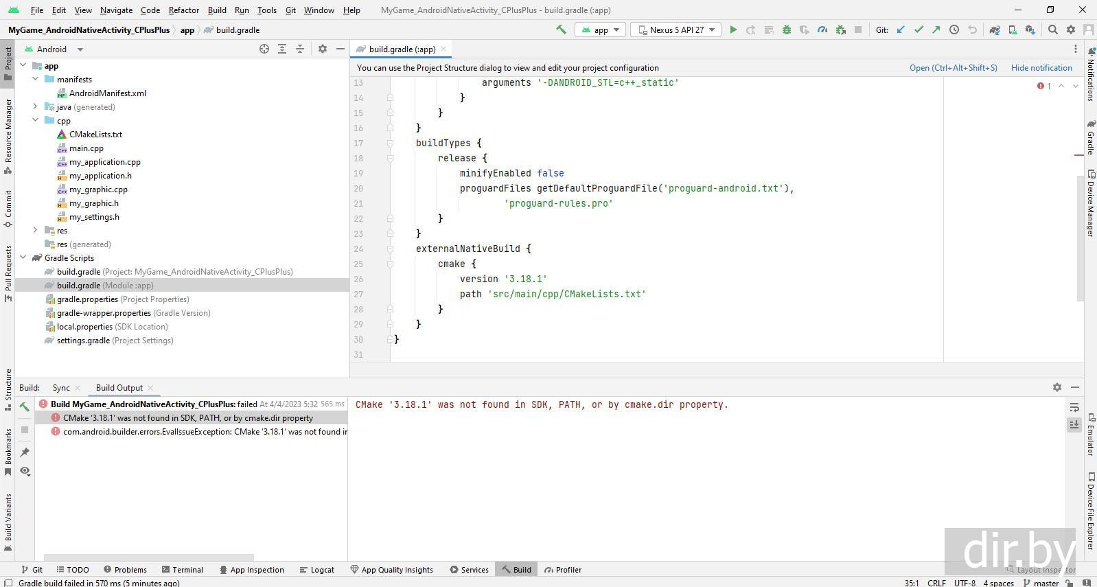 Create a project "Android Native C++ Game" for the phone | Android Studio, Android NDK, OpenGL ES, C++