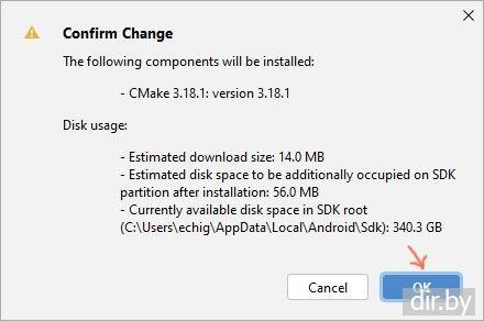 Error "CMake "3.18.1" was not found in SDK, PATH, or by cmake.dir property" when compiling a project to Android Studio