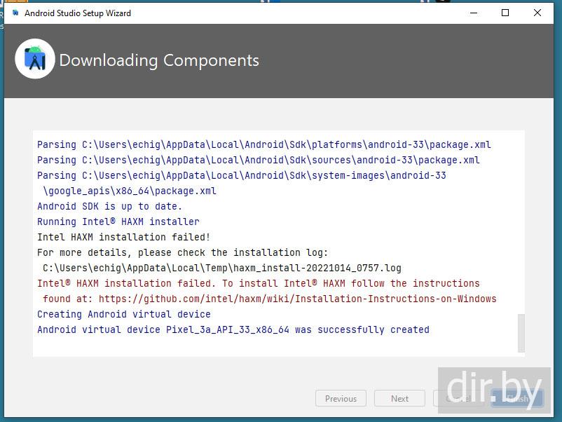 Intel@ HAXM installation failed. To install Intel@ HAXM follow the instructions