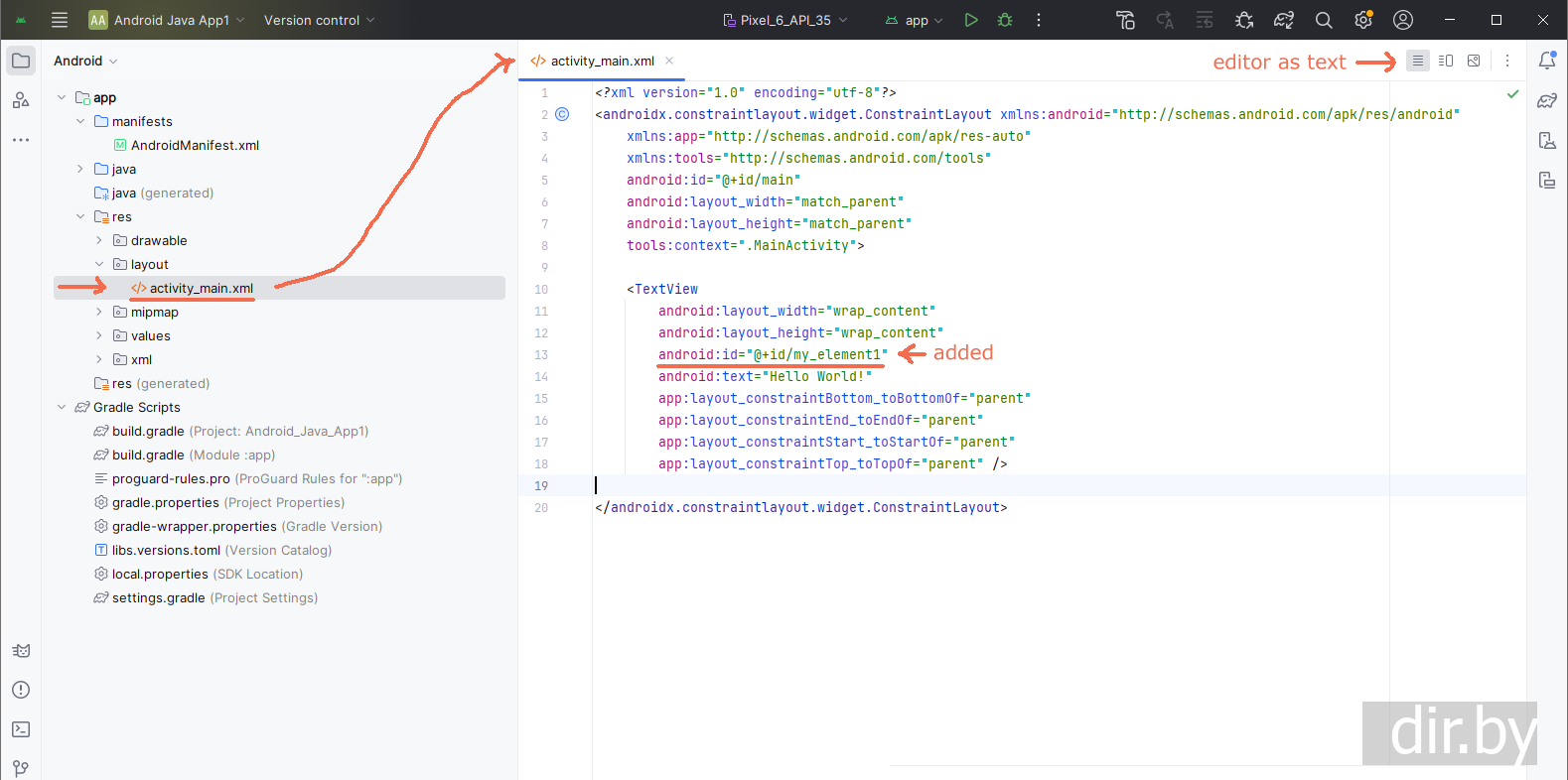 TextView myElement = this.findViewById(R.id.my_element1);