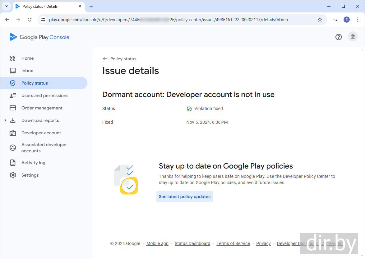 Your developer account is not in use. Play Console developer accounts are intended for developers who actively publish and maintain apps. To protect the safety of app users, developer accounts that aren’t used are closed...