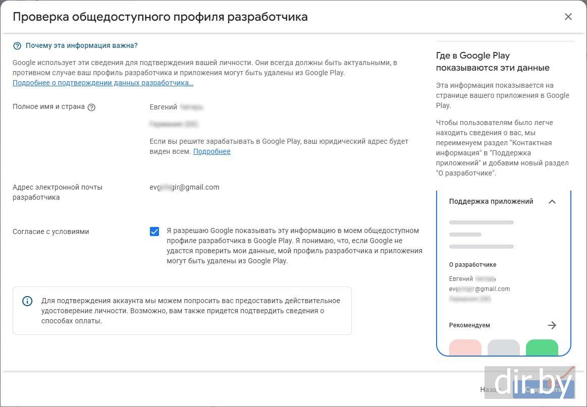 Разработчику в Google Play Console требуется подтвердить личность | Google Play Console