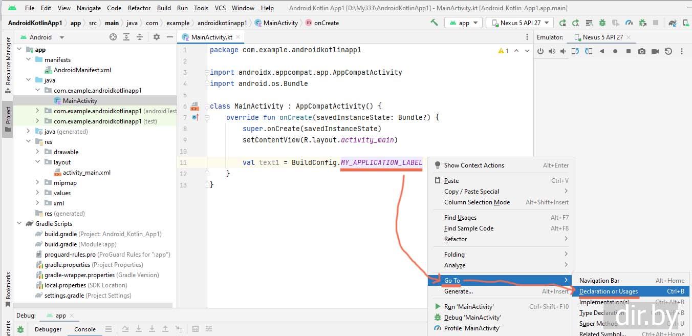Run Kotlin an application in Android Studio in debugging on a computer (Windows) in emulator mode Android Device