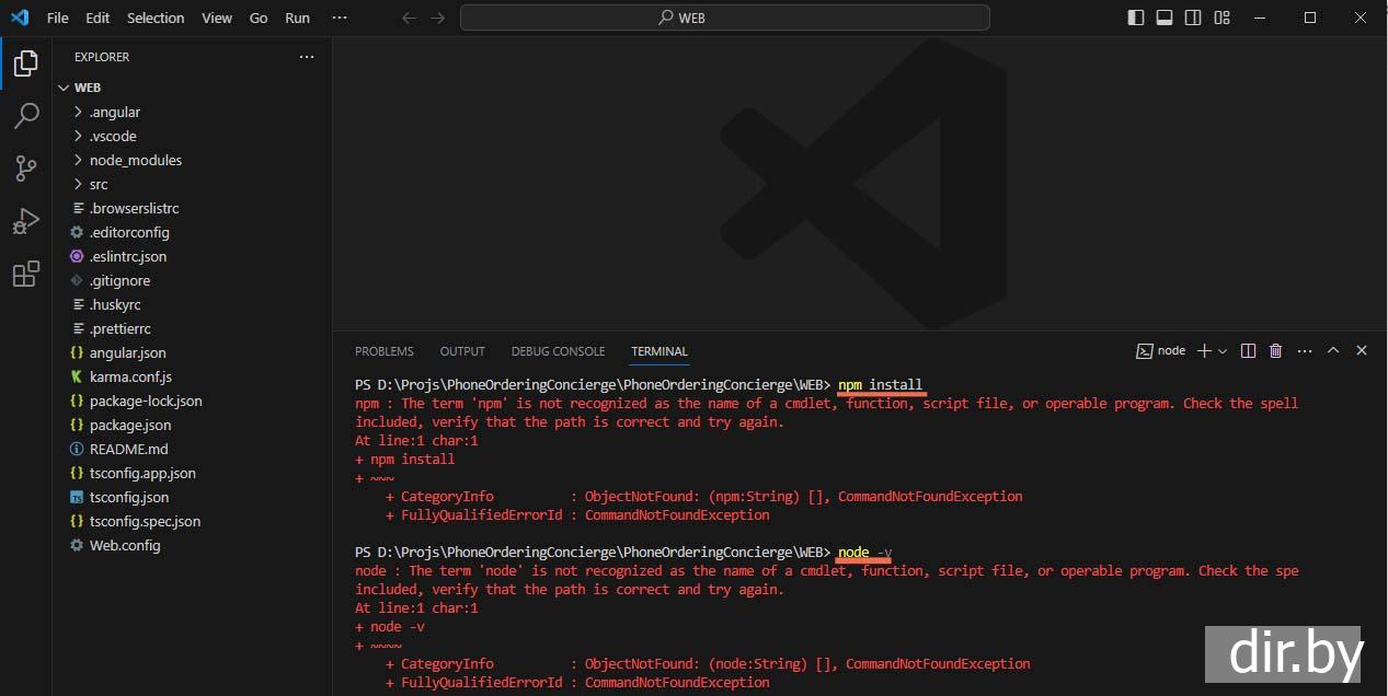 npm : The term 'npm' is not recognized as the name of a cmdlet, function, script file, or operable program. Check the spell