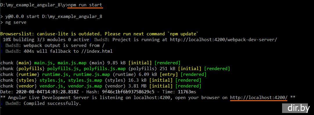 Создаем новое web приложение с Angular 8. Используем командную строку: npx -p @angular/cli@8.1.0 ng new