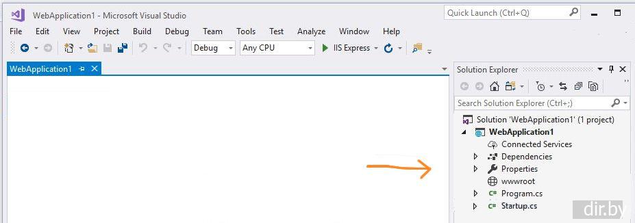 Среди этих шаблонов выберем Empty. Все остальные значения оставим по умолчанию и нажмем на кнопку OK . И Visual Studio 2017 создает новый проект: