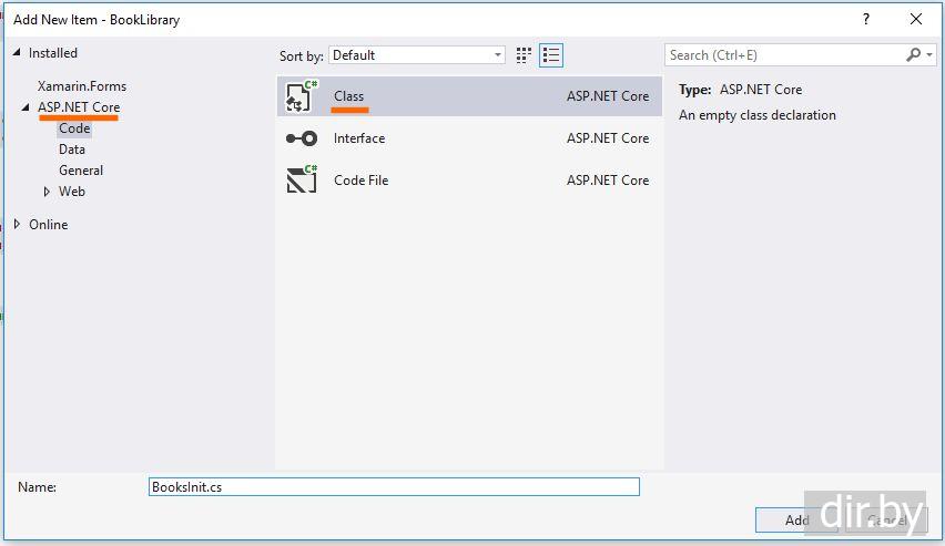 Инициализация Базы Данных на запуск программы (добавляем класс BooksInit в папку Models)