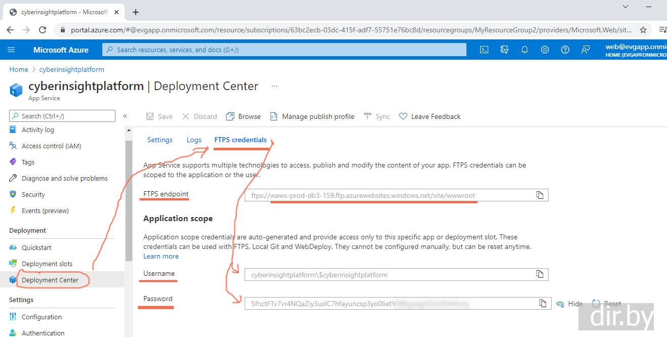 К приложению Angular (Azure Web Service) соединяемся через FTP | используем FAR, File Explorer