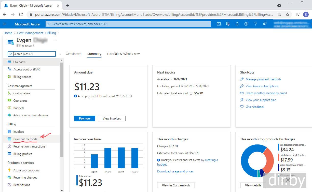Как посмотреть расходы (сколько денег платить в месяц, оплатить) в Azure ?