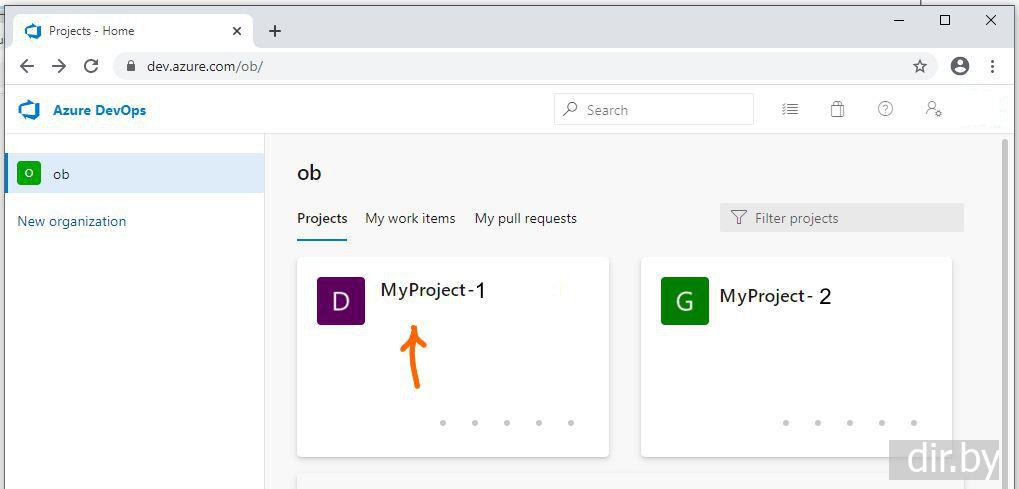 В DevOps создаем организацию. Создаем проекты