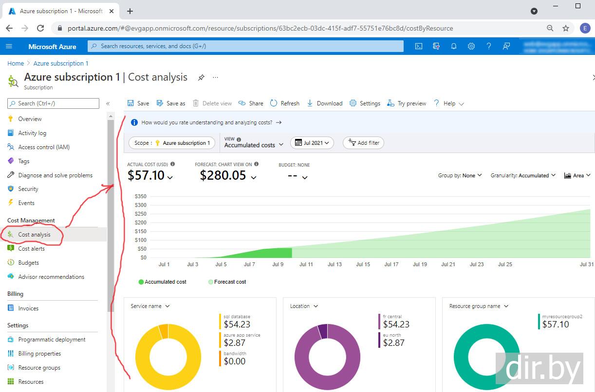 Как посмотреть расходы (сколько денег платить в месяц, оплатить) в Azure ?