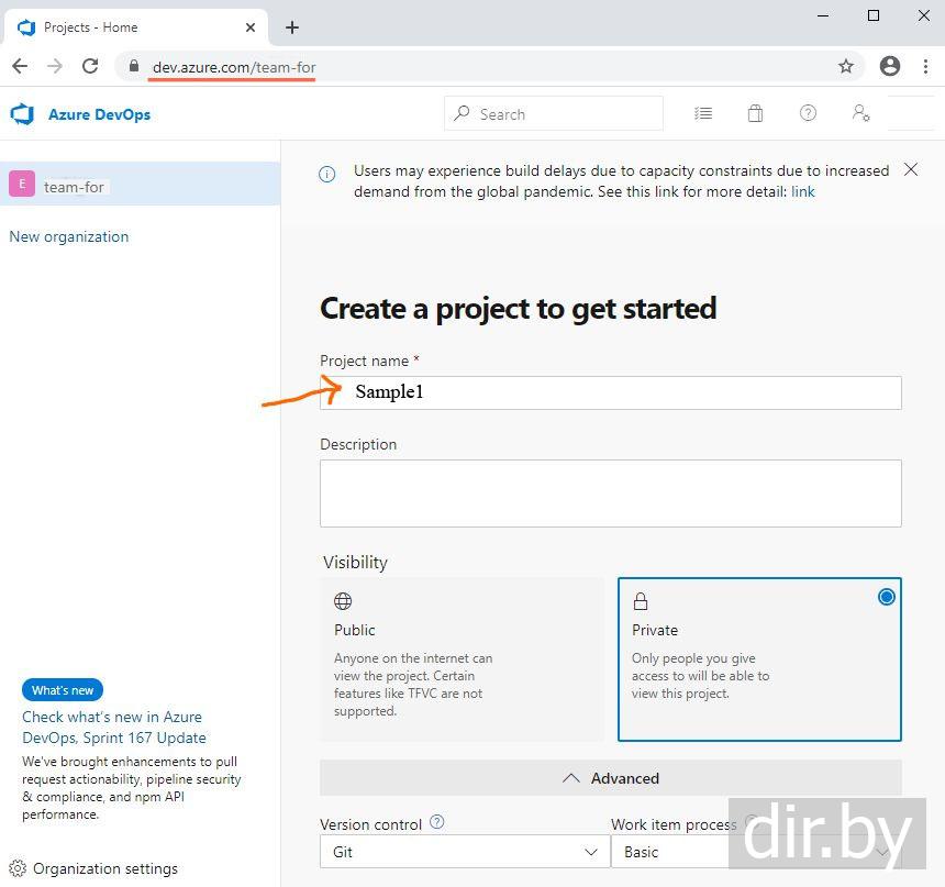 Начать работу с Azure DevOps. Создаем организацию. Создаем проект (git репозиторий)