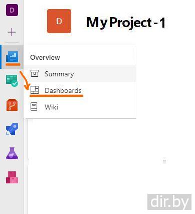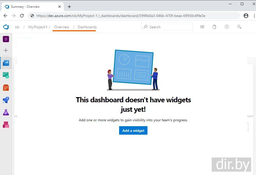 Overview → Dashboards в Azure DevOps в браузер Chrome