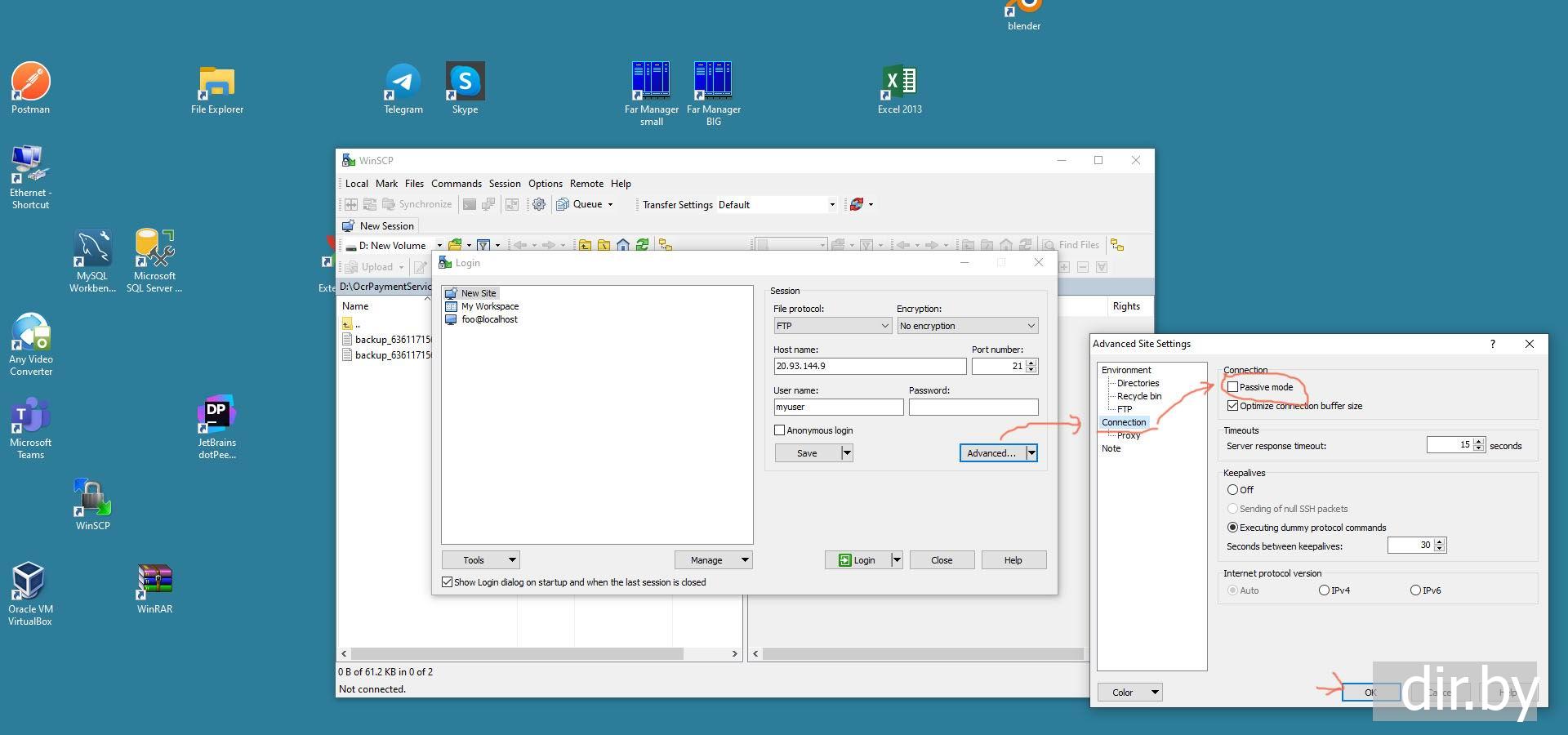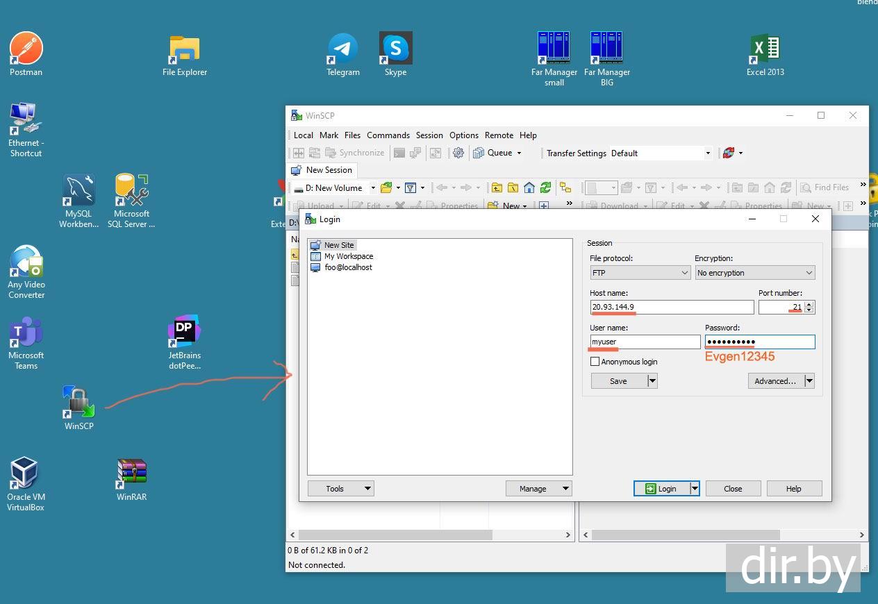 Запускаем на любом компьютере программу WinSCP (программа для работы с FTP)