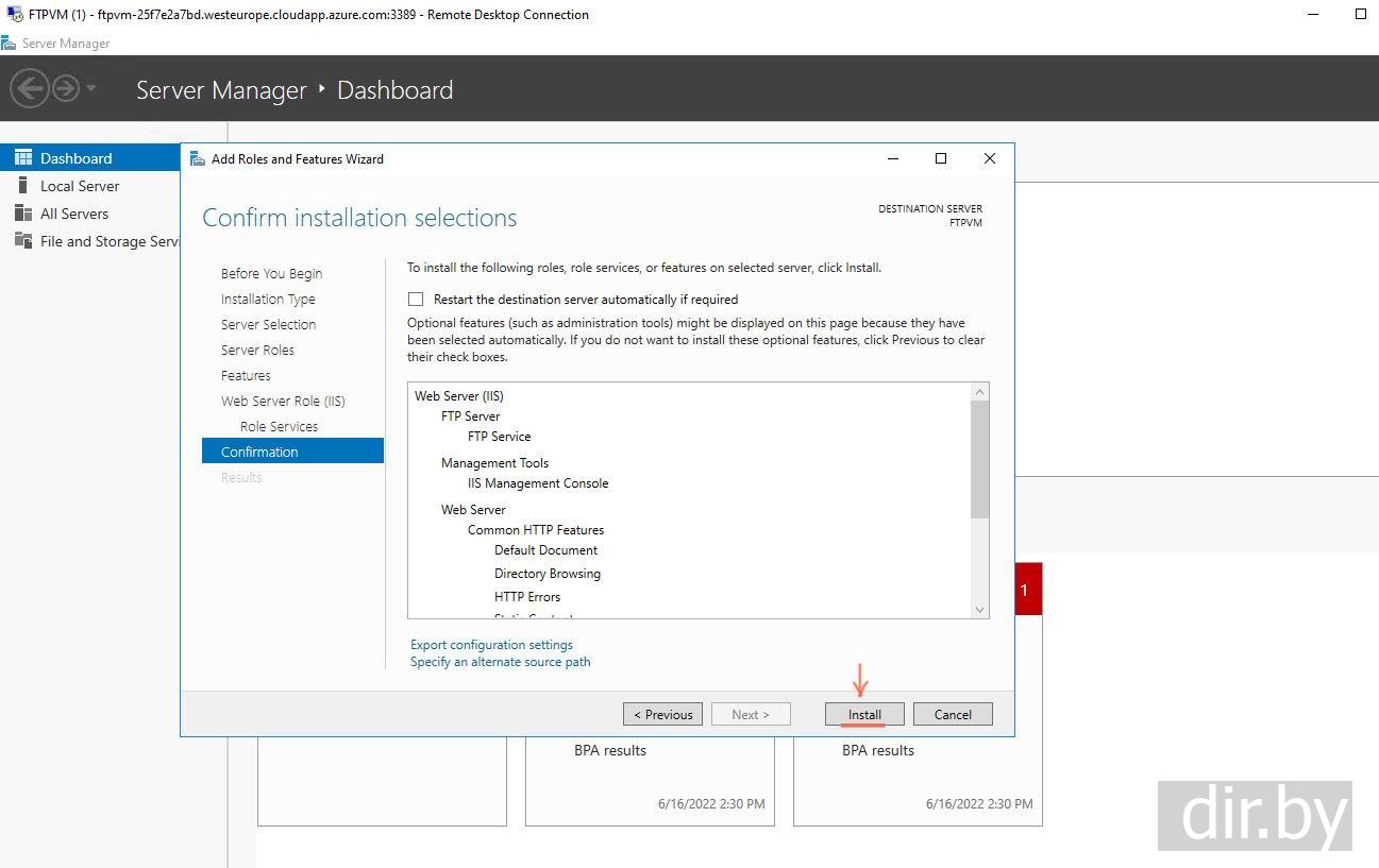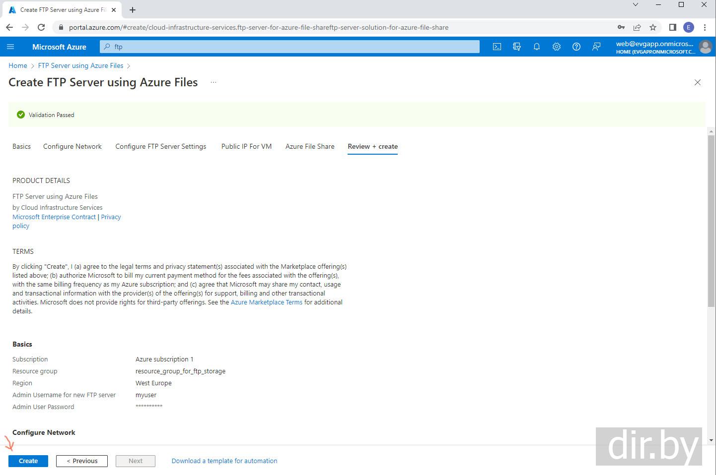 Создаем на Azure сервис "FTP Server using Azure Files"