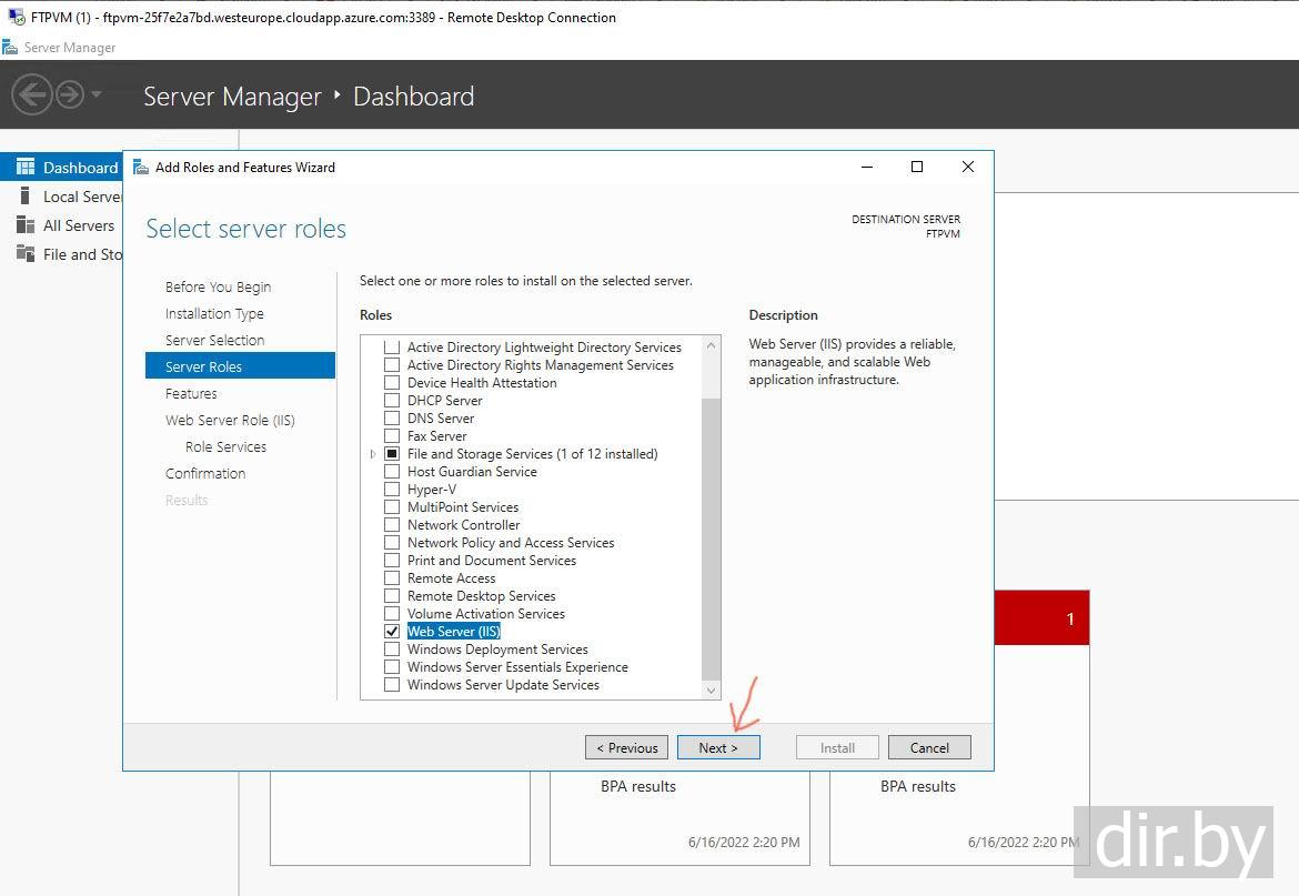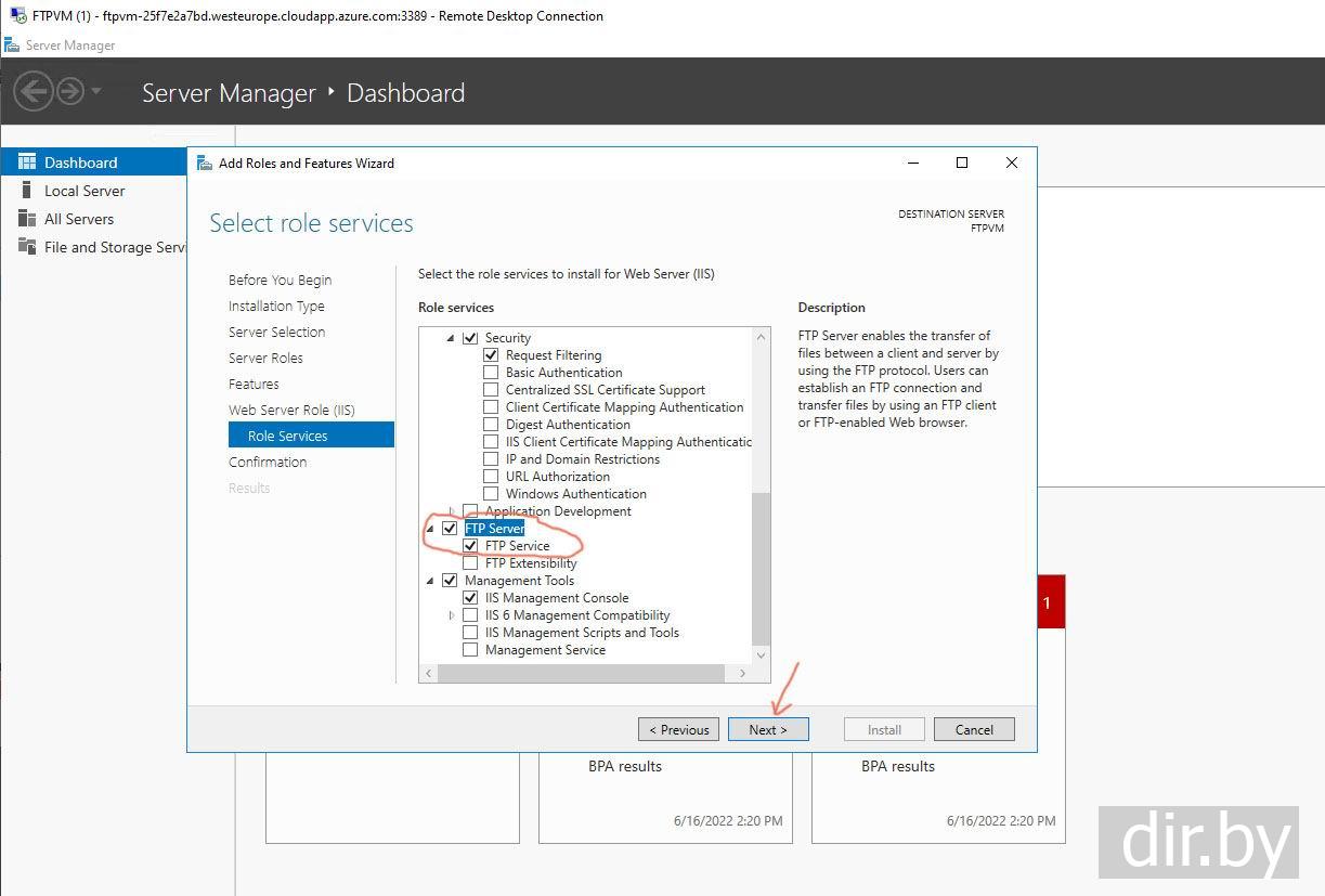 Шаг 4. На удаленном компьютере дообавляем Web Server и FTP Server