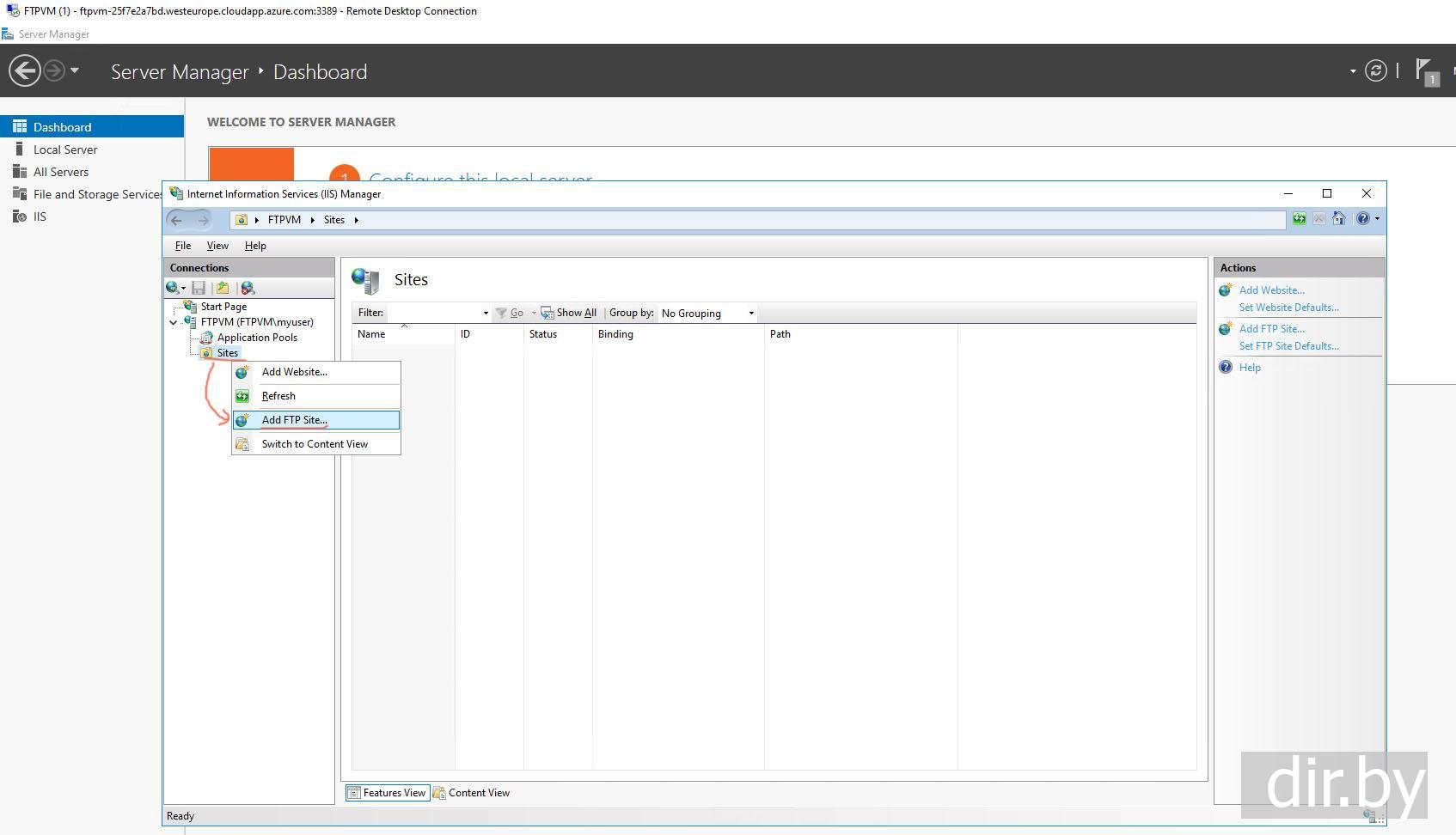Шаг 5. На удаленном компьютере добавляем сайт в Web Server