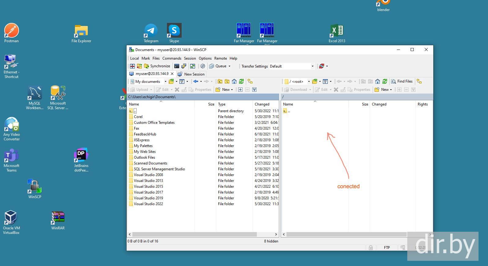 Запускаем на любом компьютере программу WinSCP (программа для работы с FTP)
