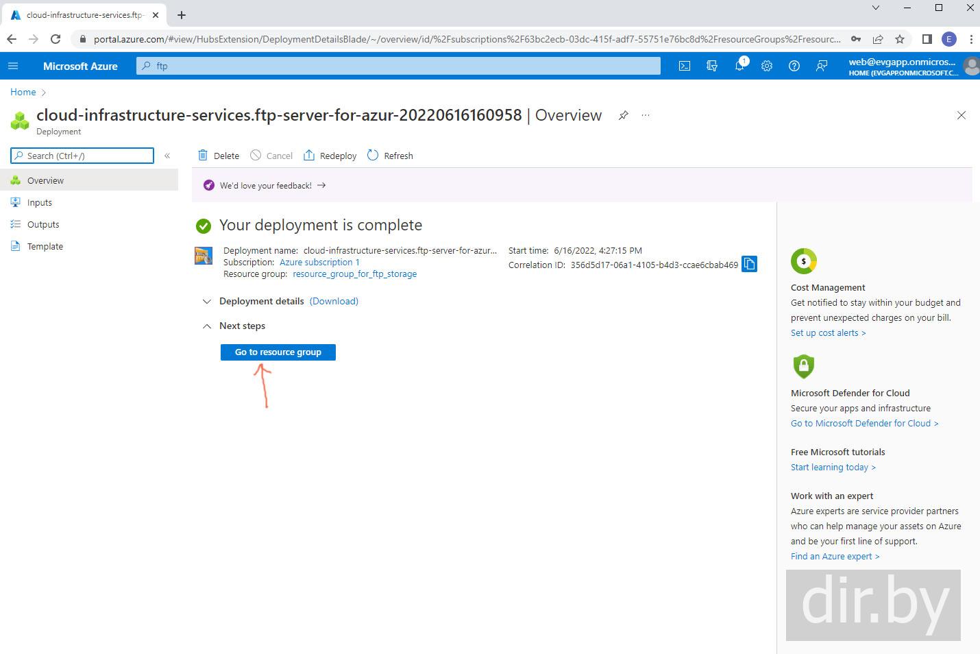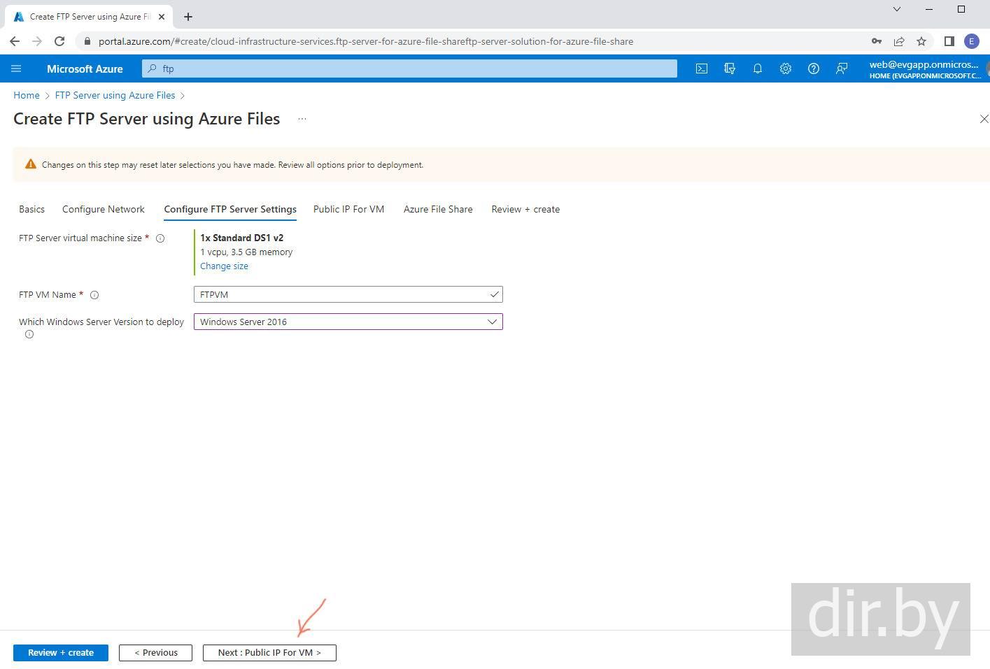 Создаем на Azure сервис "FTP Server using Azure Files"