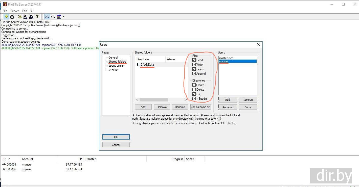 Шаг 8. Запускаем FileZillServer и создаем FTP пользователя