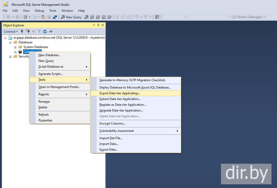 Сохраняем базу данных SQL Server Azure на свой компьютер (backup)