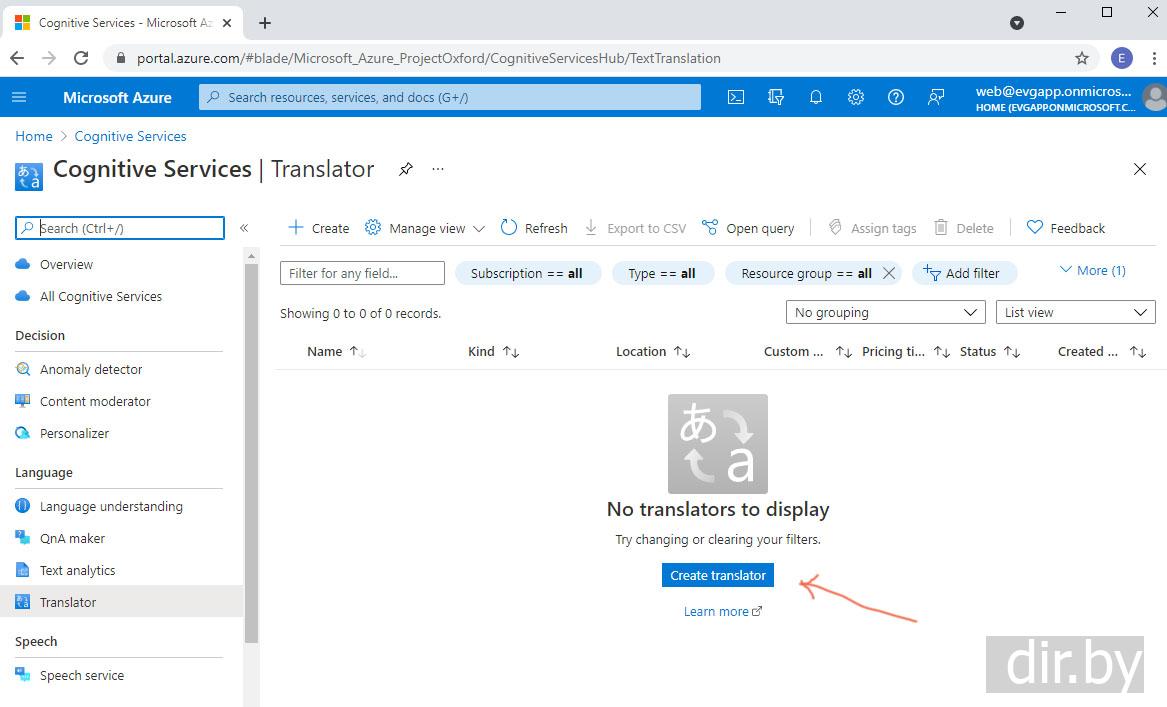 Azure Translator ошибка "is disabled and therefore marked as read only. You cannot perform any write actions on this subscription until it is re-enabled"