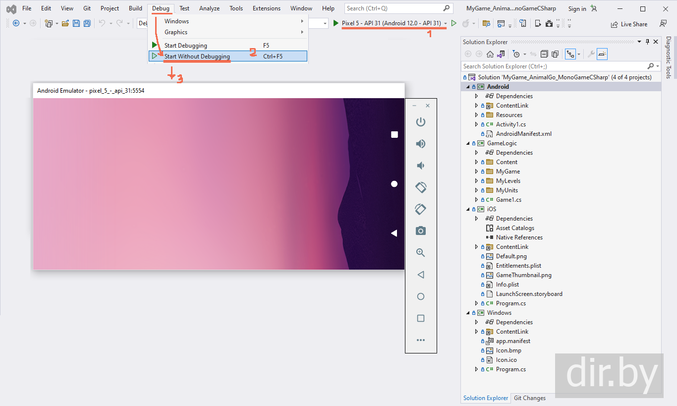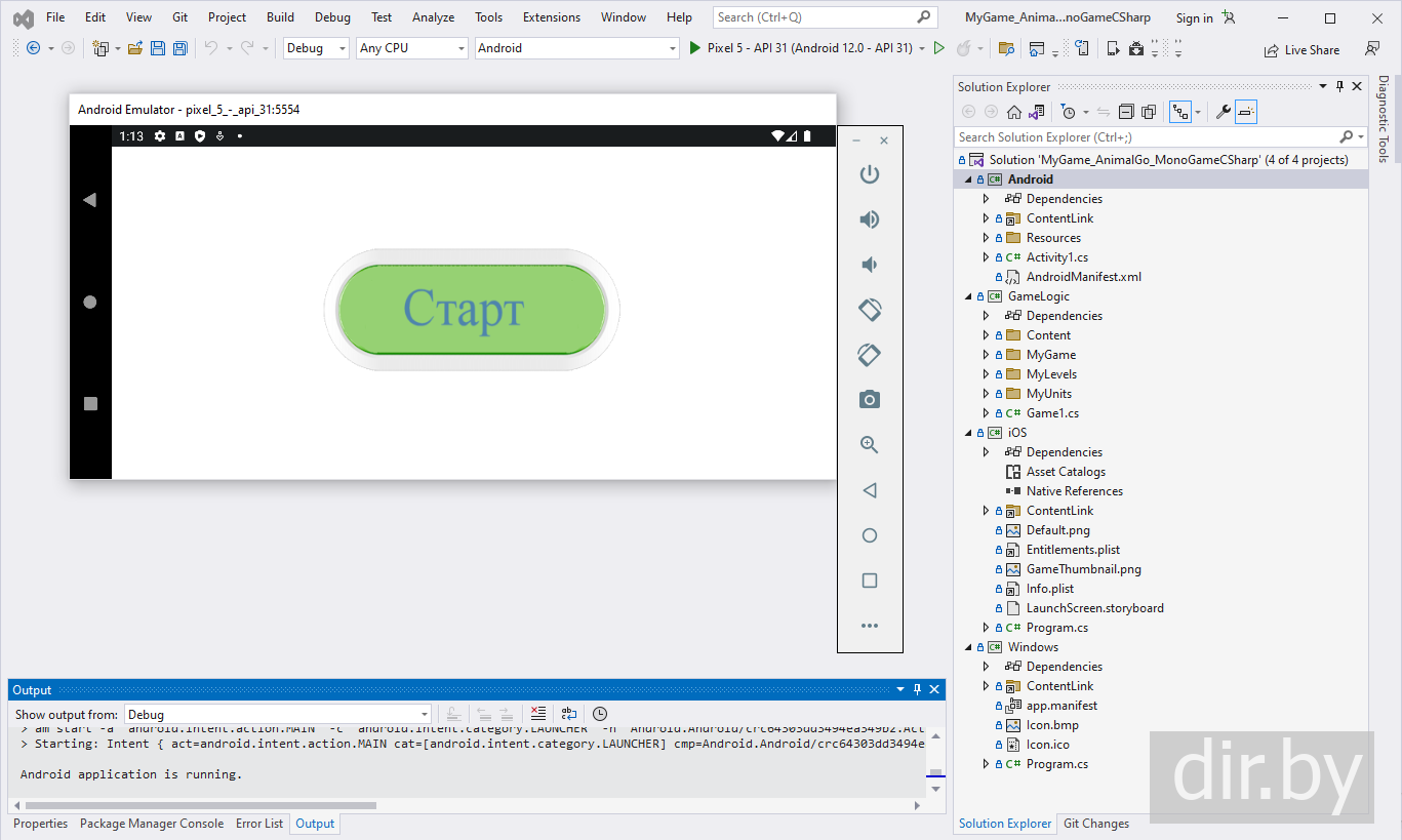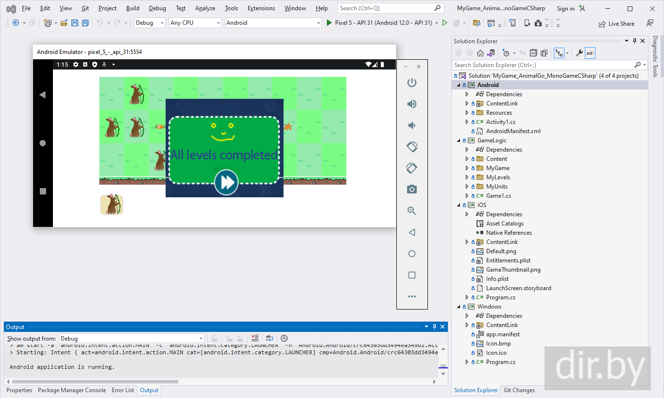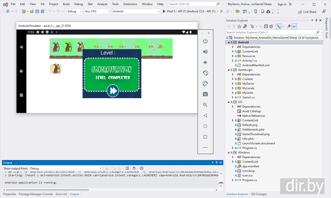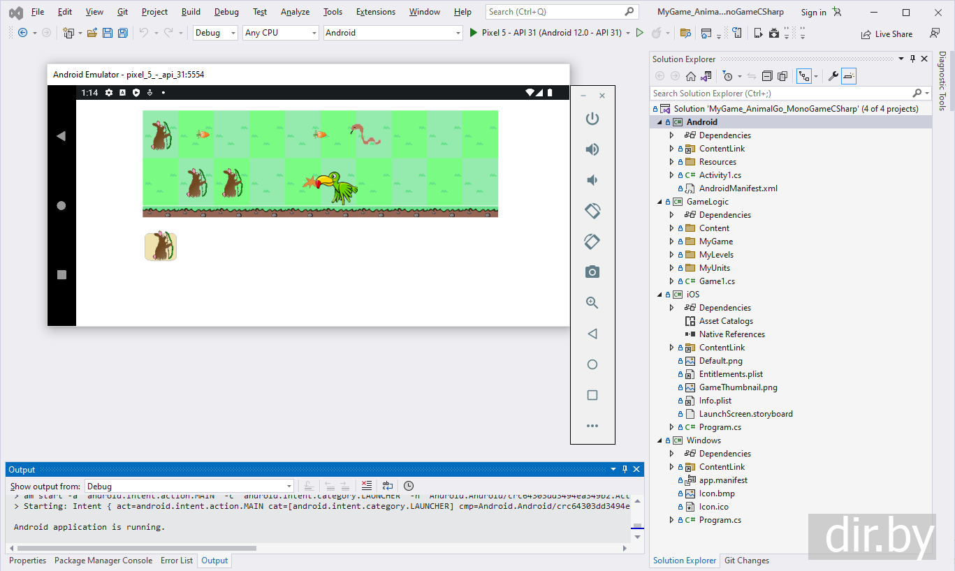 How to compile and run the game "Animal Go" on your phone or in emulator mode Android on your computer (Windows) | C#, MonoGame