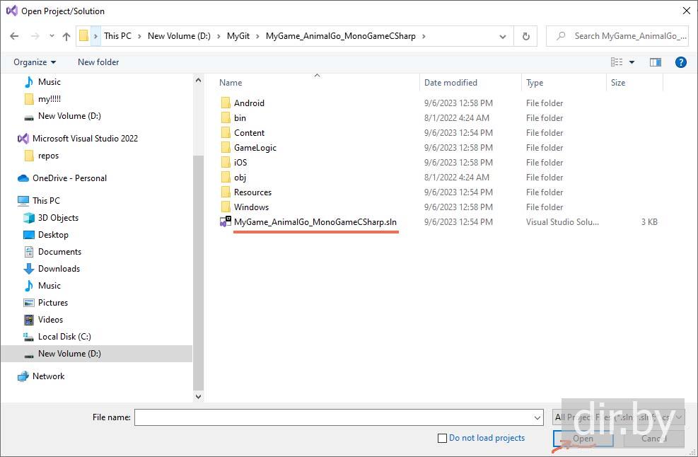 I downloaded the project MyGame_AnimalGo_MonoGame to the folder D:/MyGit
