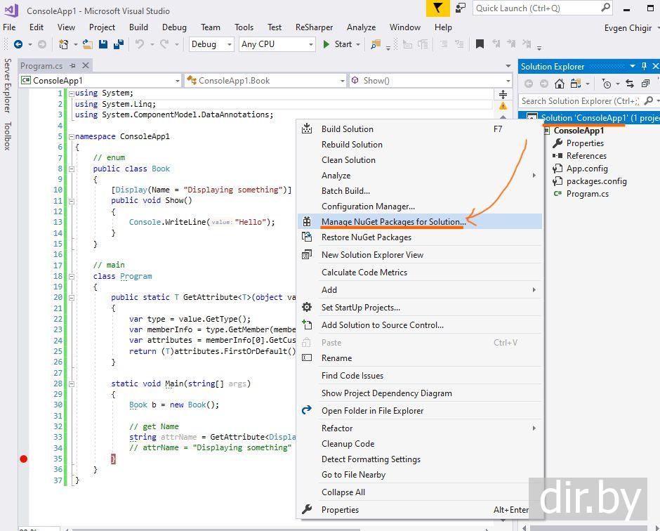 Пример 2. Получаем информацию атрибута для свойства, метода у класса, используем reflection (отражение)