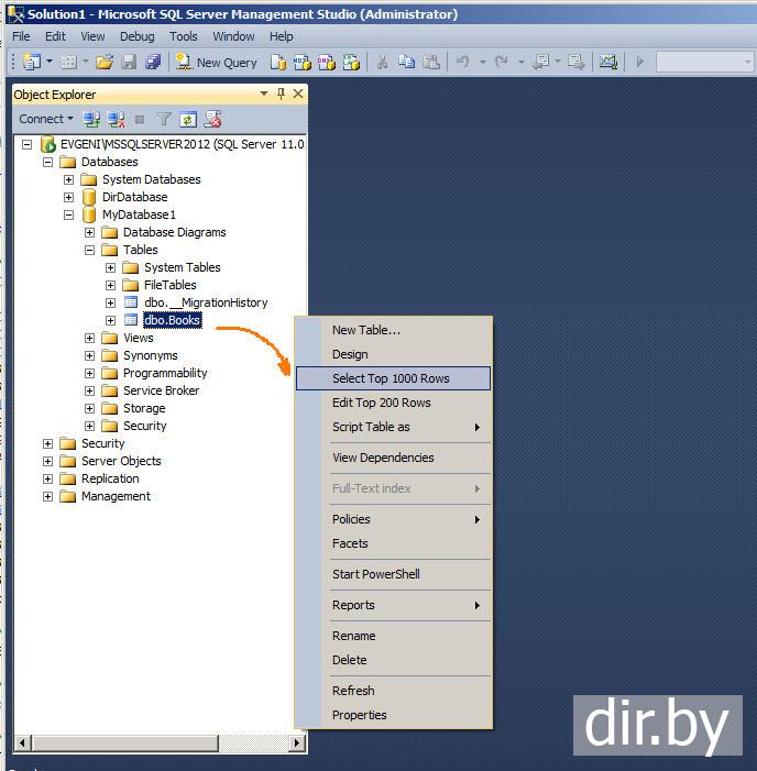 Проверяем как создалась наша База данных и таблица в Microsoft SQL Server