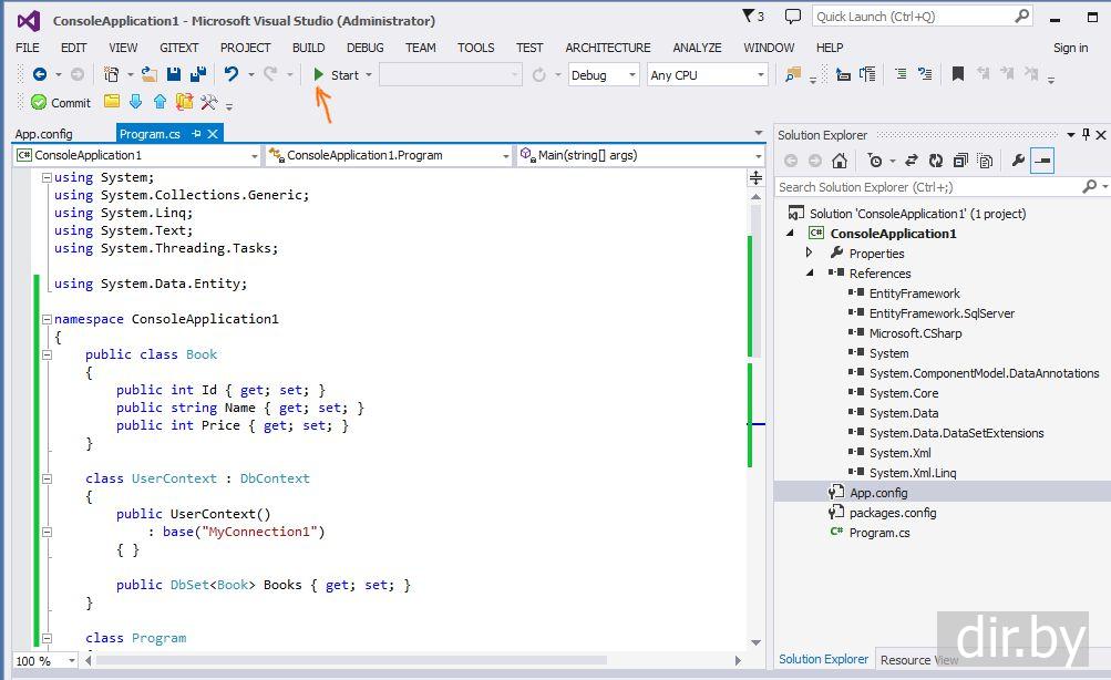 Entity Framework в консольном приложении C#. Используем Code First (пишем c# код, а таблицы в базе данных создаются сами)