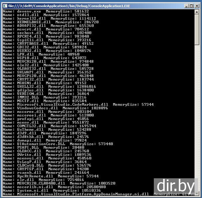 Console.WriteLine("Name: {0} MemorySize: {1}", module.ModuleName, module.ModuleMemorySize);