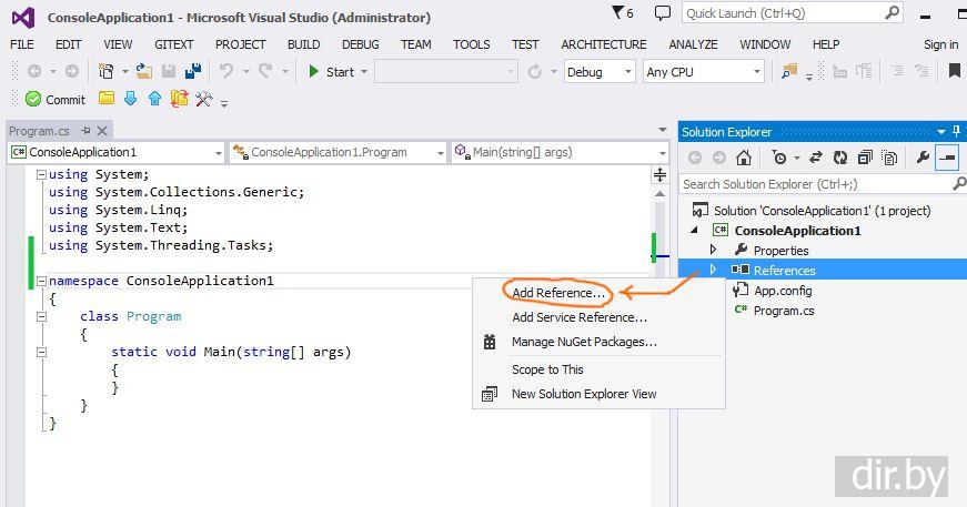 Напишем C# код в котором будем использовать классы нашей сборки
