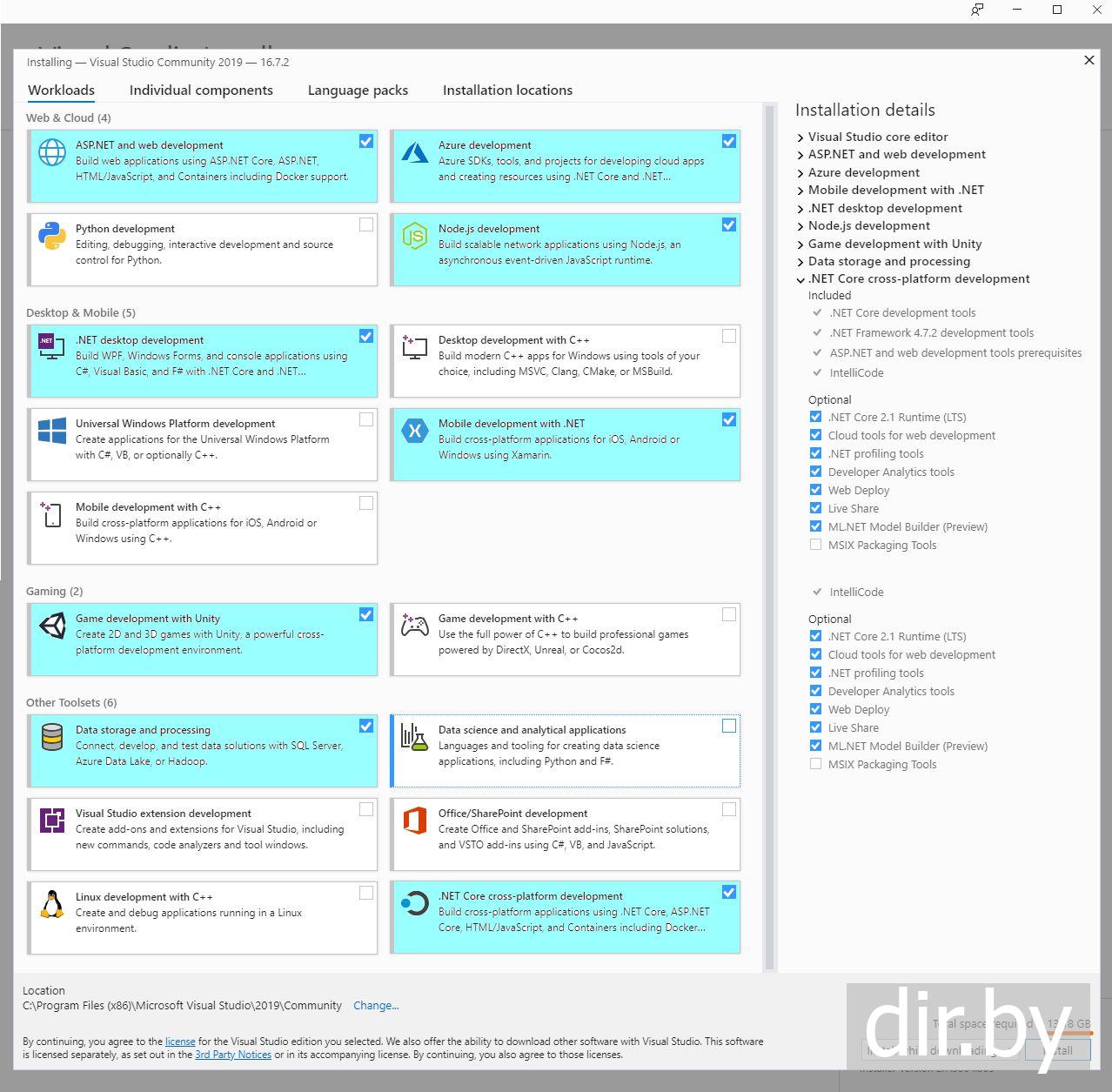 Скачать и установить Visual Studio 2019 (для изучения C#, написание программ: WPF, ASP.NET, ASP.NET Core, Xamarin, Unity, MonoGame)