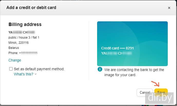 Открываю account и добавляю платежную карточку