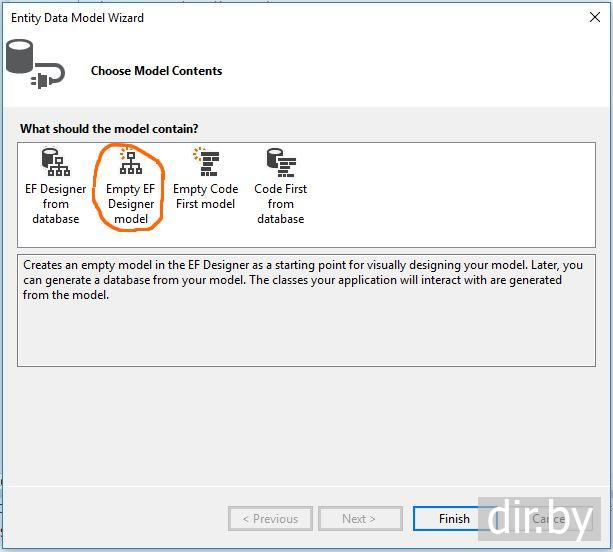 Шаг 2. Создаем модель (Empty EF Designer Model)