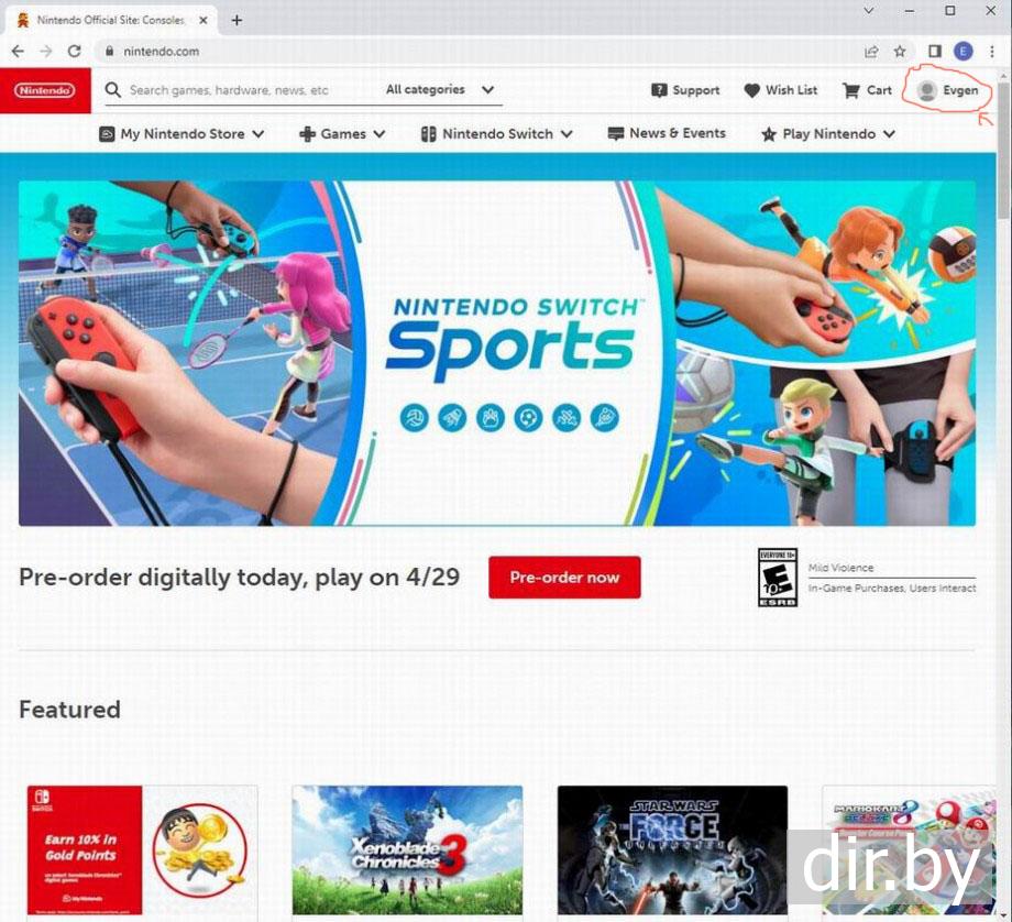 На ноутбуке захожу в Nintendo account (сайт https://nintendo.com ) и меняю страну чтобы платить в euro(€), dollar($), pound(£) при покупке игр для Nintendo Switch